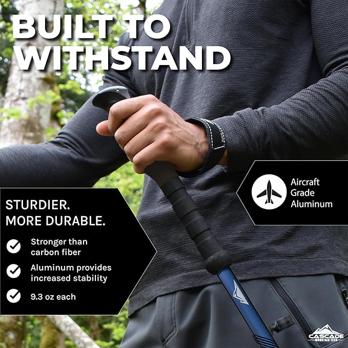 Exceptional Quality and Comfort – Crafted from lightweight aircraft-grade 6061 aluminum, each 9.3-ounce trekking pole is less likely to snap under lateral pressure from carrying a heavy load. Rubber grip tops are more comfortable than the hard plastic found on your buddy’s average trekking poles.